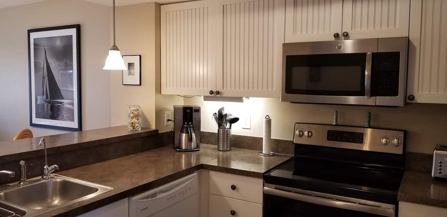 Located on the west and east sides of a well-maintained condominium, our rental offers scenic views of the canal and landscaped backyard. Either on the unit’s east or west decks, the pristine beaches, or by the pool, there is plenty of space to enjoy the sun in an area surrounded by nature.